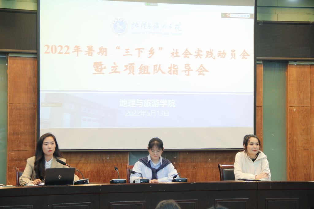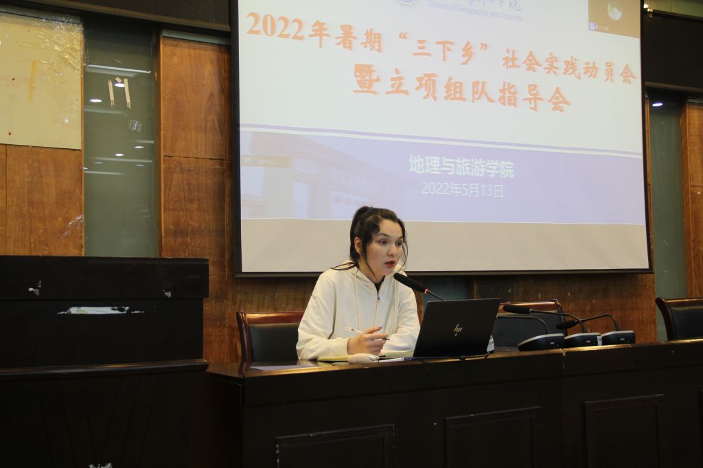 5月13日晚,英国365集团官网在院实验楼101报告厅举行2022年暑期“三下乡”社会实践动员会暨立项组队指导会。2020级、2021级本科生及研究生各班级班长、团支书,有意向组建暑期社会实践团队的负责人等参加线下会议,各班级员工代表通过腾讯会议平台线上参会。安徽省2021年暑期社会实践优秀调研报告一等奖团队负责人、2019级旅游管理专业董婷,“情系川皖·圆梦巴蜀”山区留守儿童支教团队负责人、2020级地理科学(师范)专业苏热叶受邀参会。会议由英国365集团官网团委书记陈祥云主持。