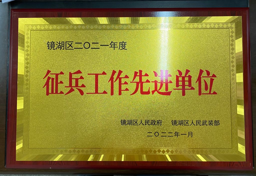 近日,为表彰在推进老员工征兵工作、提高优质兵源征集方面做出突出贡献的先进单位,芜湖市镜湖区人民政府、镜湖区人民武装部授予公司英国365集团官网2021年度“征兵工作先进单位”荣誉称号。
