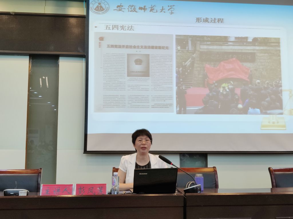 彭凤莲以“学习习近平法治思想”为主题,围绕习近平法治思想的形成过程、习近平法治思想的核心要义两个方面,重点阐述了习近平法治思想的形成背景和“11个坚持”的主要内容,并指出习近平法治思想根植于新中国成立以来特别是改革开放和党的十八大以来波澜壮阔的法治实践进程,是中国特色社会主义法治思想的集大成,是对马克思主义法治理论的继承、丰富和创造性发展,是社会主义伟大实践的理论升华。同时,习近平法治思想是顺应实现中华民族伟大复兴时代要求应运而生的重大理论创新成果,是马克思主义法治理论中国化最新成果,是习近平新时代中国特色社会主义思想的重要组成部分,是全面依法治国的根本遵循和行动指南。