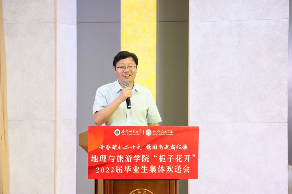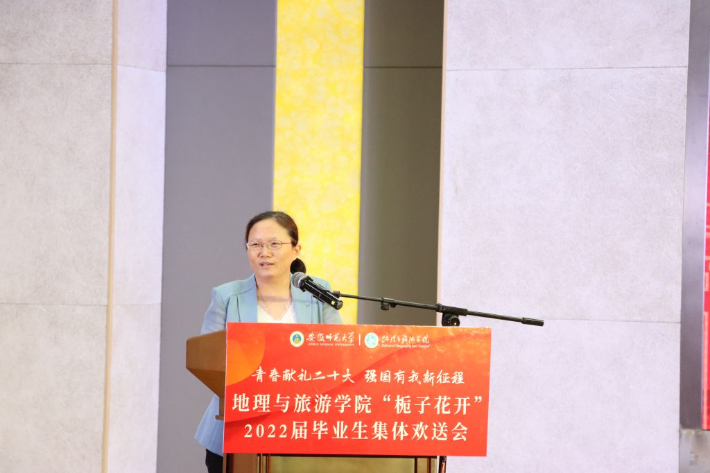 “十年树木,百年树人”,老师们严厉的谆谆教诲后蕴藏着殷殷深情。欢送会上,毕业班辅导员为毕业生送上临别寄语。2018级旅游管理、酒店管理、土地资源管理专业辅导员陈祥云深情回忆了与同学们朝夕相处的点点滴滴,希望大家永远保持热爱、奔赴山海,在热爱祖国、热爱生活、热爱自己中遇见更好的自己。2018级地理信息科学专业辅导员彭媛媛细数了两年来从实习、考研到就业的过程中,与同学们逐渐加深的感情、逐渐增加的信任,勉励大家保持善良、坚持奋斗、放平心态,不汲汲于名利,不戚戚于平淡,心怀梦想,顽强生长。2018级地理科学(师范)专业辅导员丁茹栩以“感恩”“传承”“期待”三个关键词,回顾了自己作为辅导员的经历和路程,希望同学们始终抱有爱国爱民的情怀、锤炼砥砺奋斗的品格、笃定实学实干的步伐,祝福大家奔赴星辰大海,开启新的人数精彩。2018级地理科学(非师范)、城乡规划专业辅导员张慧通过温情的话语、温暖的日常,讲述了与同学们相遇相识相知的时光,总结了与同学们一起经历过的岁月、奋斗过的时光,希望大家保持一个赤诚、学习的心,做一个有理想有抱负、活到老学到老的人。