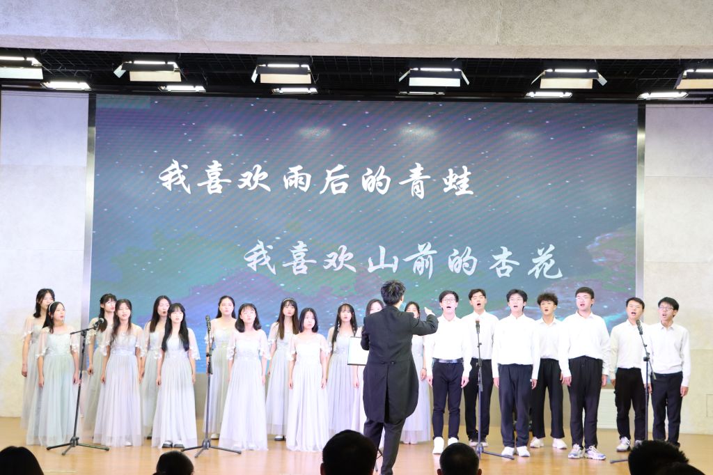合唱《我喜欢》重温了毕业生们四年前刚刚入学的画面,表达了毕业生们对母校和青春最深沉的依恋、最美好的回忆。