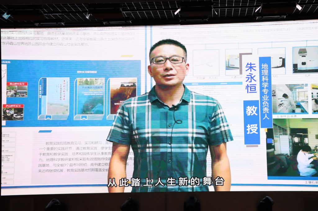 旅游管理专业教授、博士生导师杨效忠作为教师代表发言。他通过毕业微课的形式为全体毕业生讲授了大学的最后一课,表达了作为师长对员工的殷殷嘱托和满满祝福,希望同学们牢记“门”“道”“缘”“中”“慧”五个字的价值意义,以有限的生命做有限的事情,实现无限的价值,坚持修学和修行相结合、信念坚定和情感炽热相结合,在广阔天地实现大有作为,在不忘初心中做到方得始终。