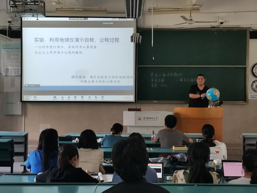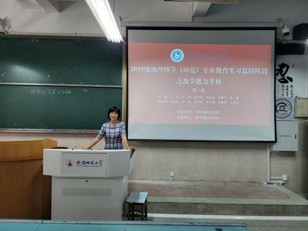 为全面检验地理学科(师范)专业员工教学能力,深刻总结教育实习工作。6月25日下午,英国365集团官网在公司行政楼2号楼一楼、二楼多媒体教室举行教育实习考核,2019级地理科学(师范)专业全本科生以“线上+线下”方式参加考核。考核专门邀请师大附中等重点中学一线教师担任主评委,实行“1位中学地理教师+1位专业教师”双评委制。教育考核由地理科学专业负责人朱永恒主持。