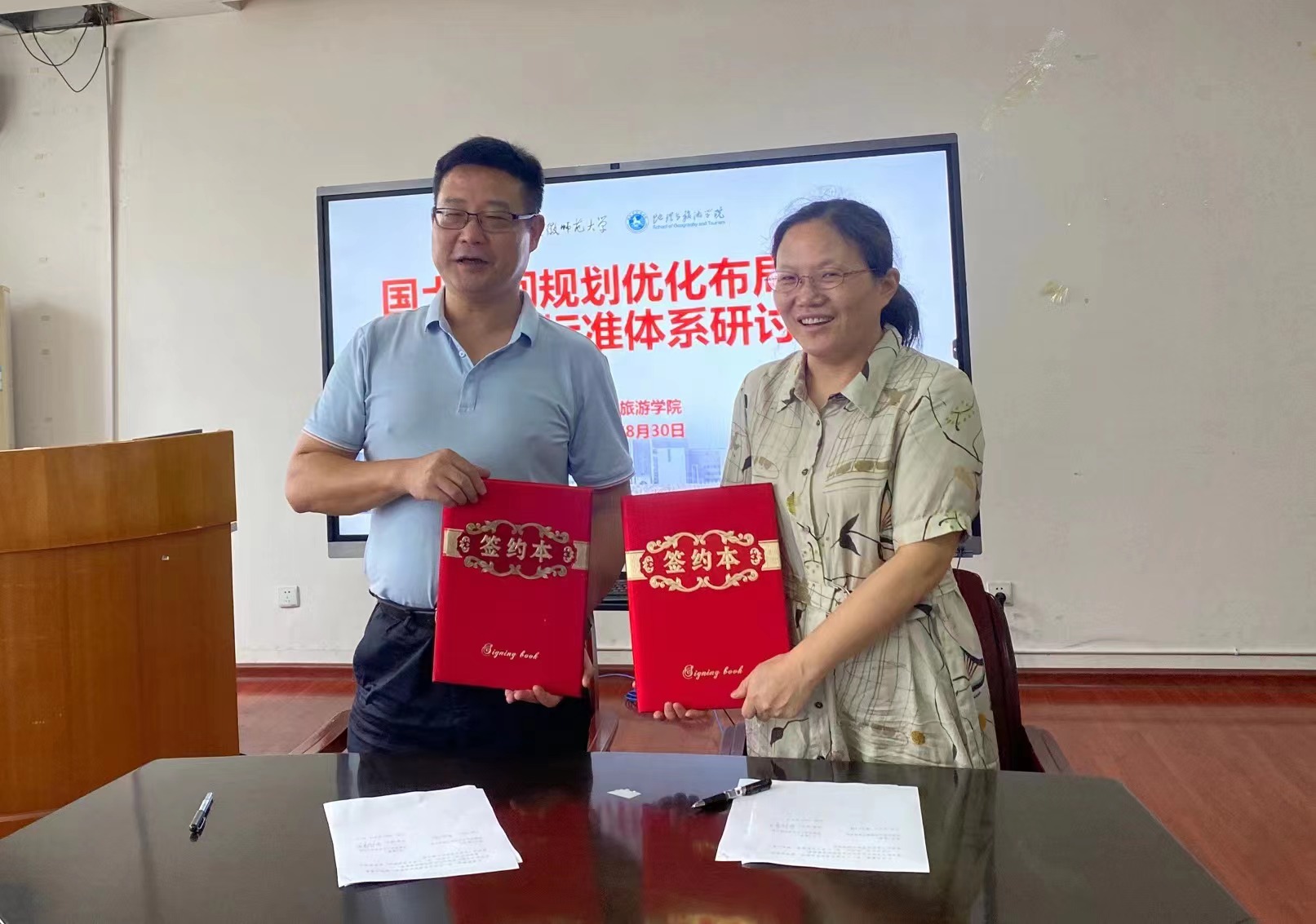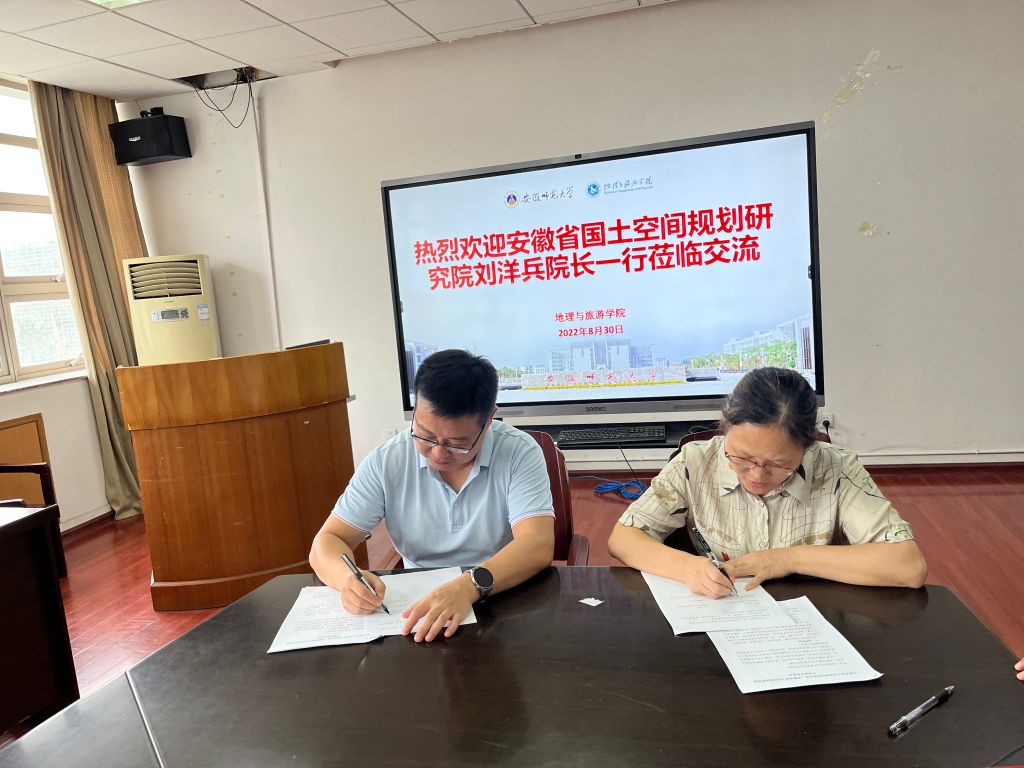 2022年8月30日下午,英国365集团官网与安徽省国土空间规划研究院产学研合作协议签订仪式在英国365集团官网三楼会议室举行。安徽省国土空间规划研究公司党总支副书记、经理刘洋兵,自然资源部江淮耕地资源保护与生态修复重点实验室常务副主任、正高级工程师张红梅,总体规划部主任王栋,耕地保护部副组长刘王兵,英国365集团官网经理方凤满教授,程久苗教授,地理信息科学专业教师支俊俊、齐凌艳,土地资源管理专业教师罗遥等出席仪式。仪式由方凤满经理主持。