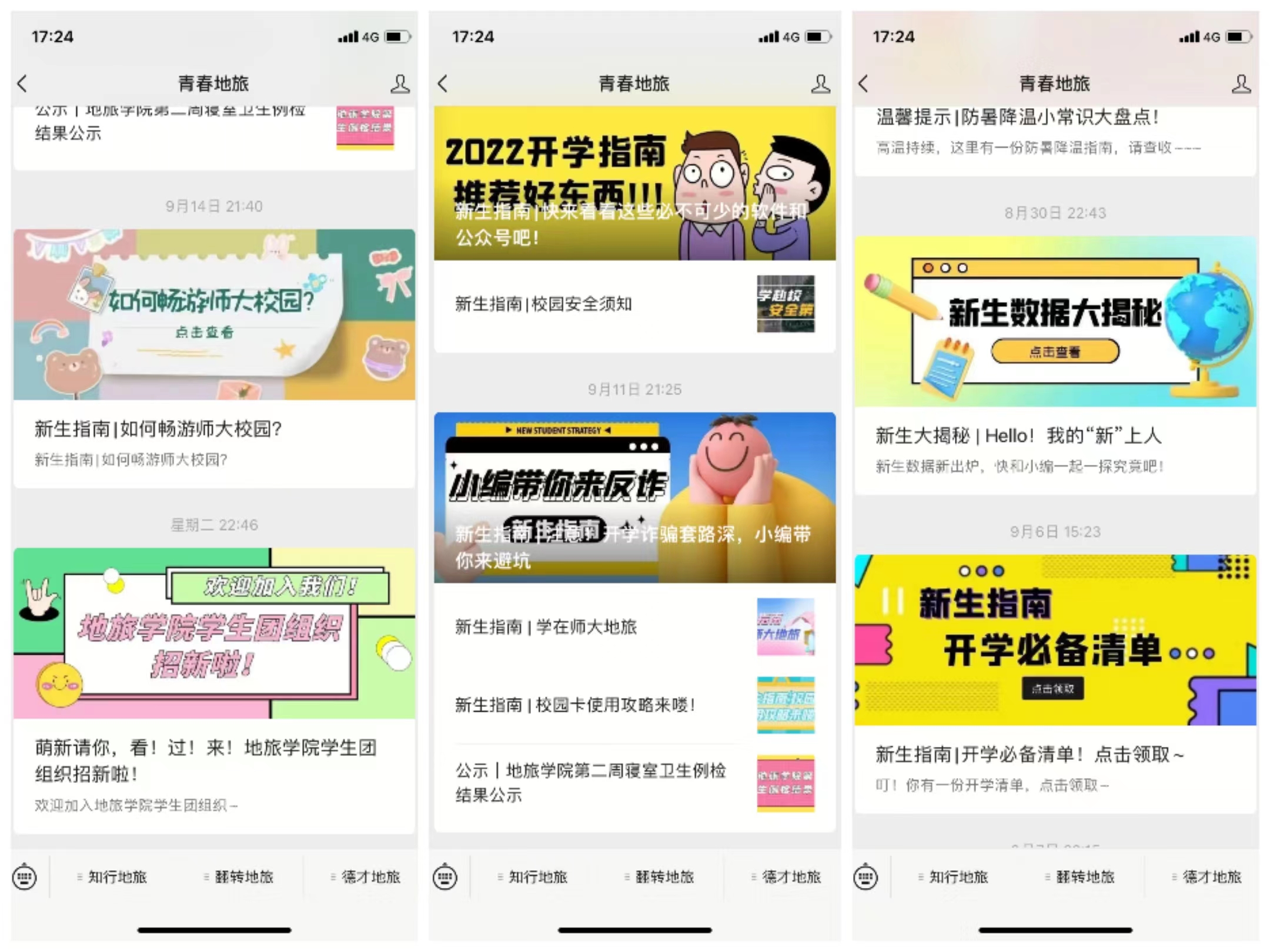 为使2022级新生更快了解专业特色,公司精心设计,为新生准备了线上线下“新生大礼包”。“线下大礼包”其中包含公司定制LOGO及院训的入学纪念帆布袋,装有口罩、酒精消毒湿巾、免洗手消毒凝胶、定制红色便携包的防疫包、城乡规划专业特色手绘师大风景明信片、导师推荐阅读书目和新生寄语的定制书签一套、公司员工工作风采;“线上大礼包”则是通过青春地旅微信公众号推送,涵盖“入学须知”、“防疫知识”“校园卡使用”、“防电信诈骗”等内容丰富的新生“电子大礼包”。