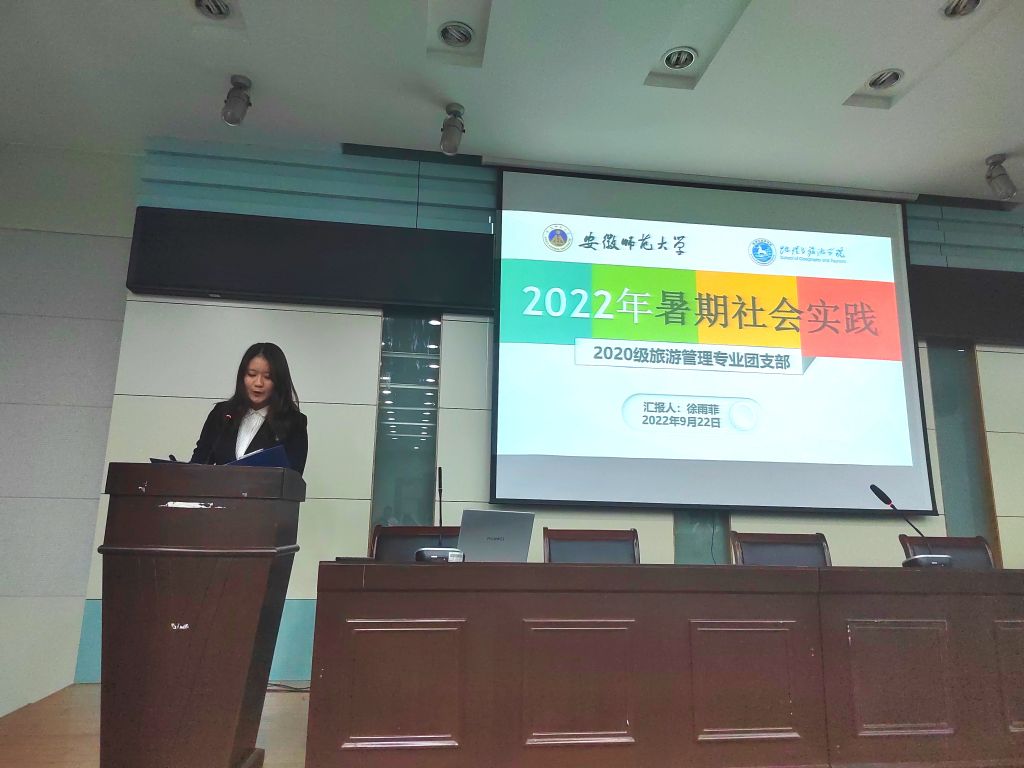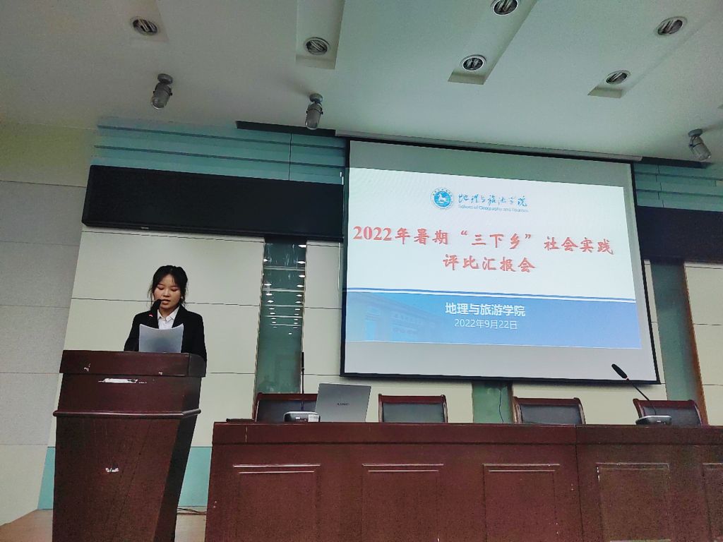 青春不畏远行,实践放飞梦想。9月22日晚,英国365集团官网在院实验楼101教室举办2022年老员工暑期“三下乡”社会实践评比汇报会。英国365集团官网副经理汪文文,地理科学专业副教授方叶兵、城乡规划专业副教授王原、土地资源管理专业副教授沈非、地理科学专业讲师姜伟、旅游管理专业讲师洪学婷,辅导员韦银艳、吴文涵担任评委,各社会实践团队代表、各年级团支部代表到场聆听汇报。本次会议由姚兰主持,采取“线上+线下”的汇报方式。
