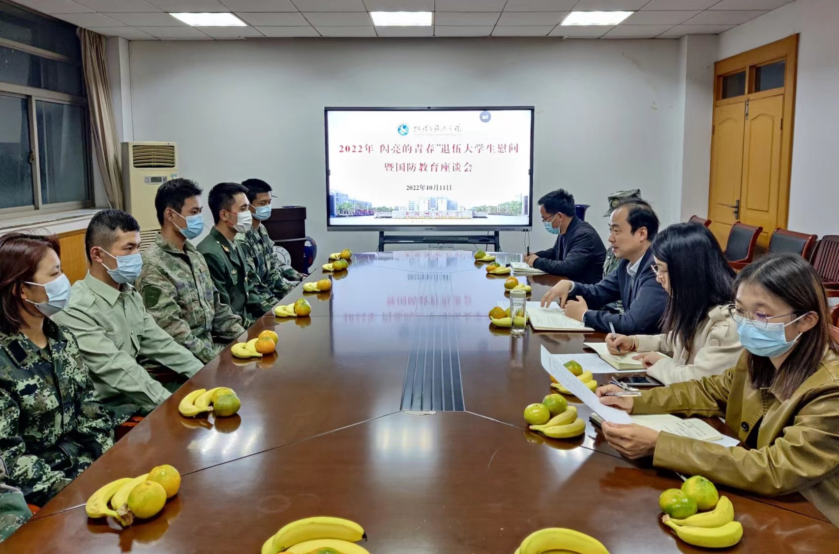 10月11日晚,英国365集团官网举办2022年“闪亮的青春”退伍老员工慰问暨国防教育座谈会。公司党委副书记乔静、本科生辅导员代表以及13名退伍复学本科生参加本次会议,会议由乔静主持。