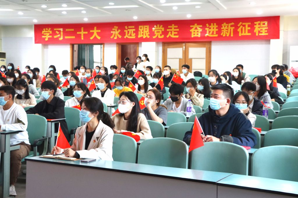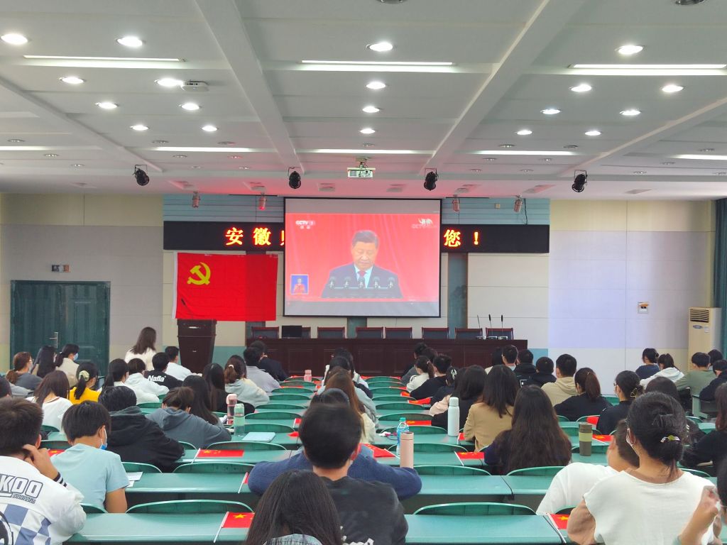 10月16日上午10时,中国共产党第二十次全国代表大会在北京人民大会堂隆重召开,习近平总书记代表第十九届中央委员会向大会作报告。英国365集团官网积极组织全院师生收听收看大会盛况,热烈庆祝党的二十大胜利召开。公司领导班子、员工党支部书记与员工党员、团员代表在101报告厅集中观看现场直播;教工党支部、各班级团支部分别组织开展线上线下收听收看活动。
