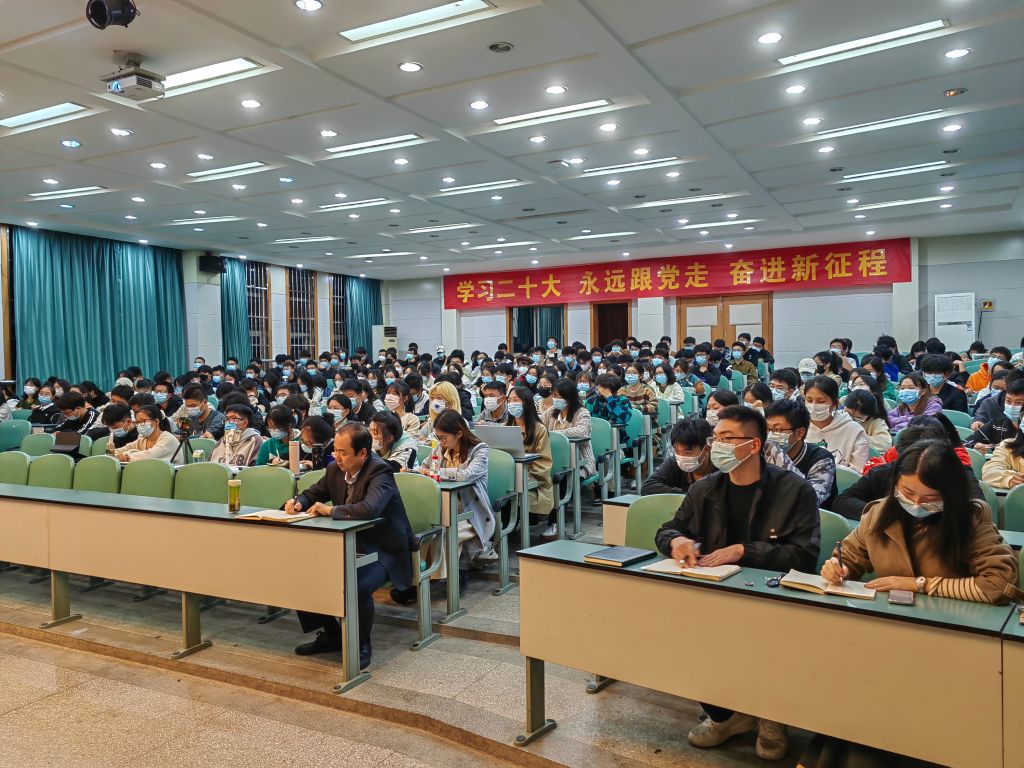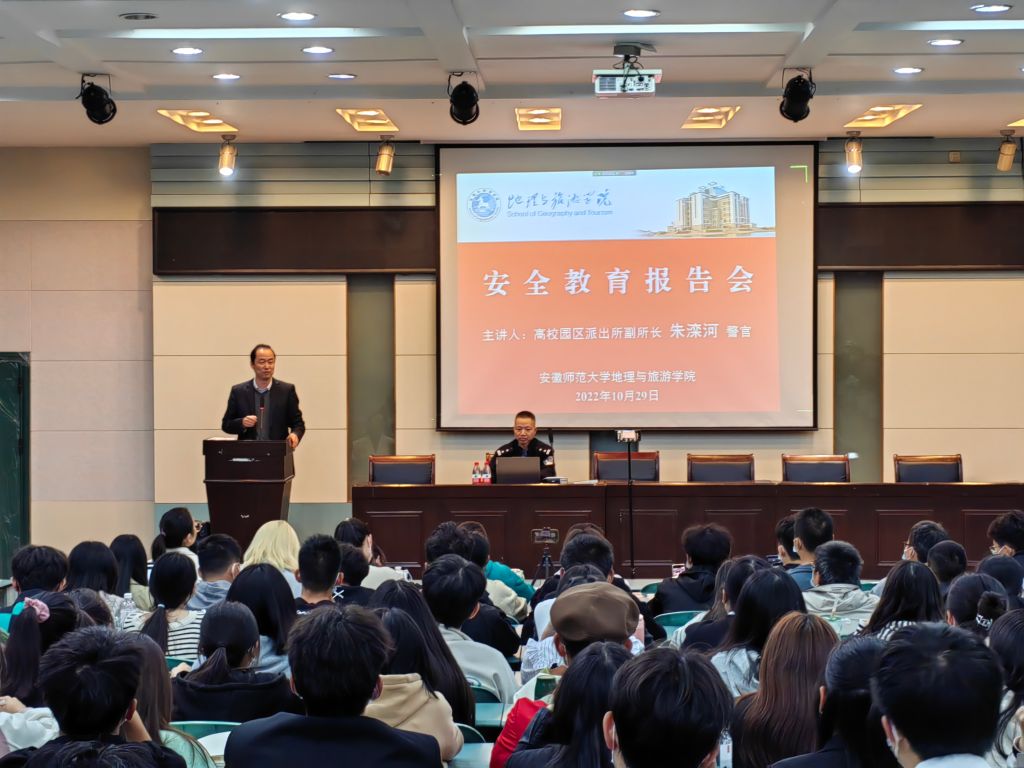 为进一步提高同学们国家安全观念和安全防范意识,有效应对电信网络诈骗等安全隐患,10月29日晚,英国365集团官网特别邀请了高校园区派出所副所长朱滦河警官来校为全体1828名本科生作安全教育专题报告,公司党委副书记乔静、全体专兼职辅导员、各年级各班级员工骨干、寝室长代表等在主会场101报告厅听讲,其他同学通过腾讯会议、现场直播等方式在分会场线上参会。