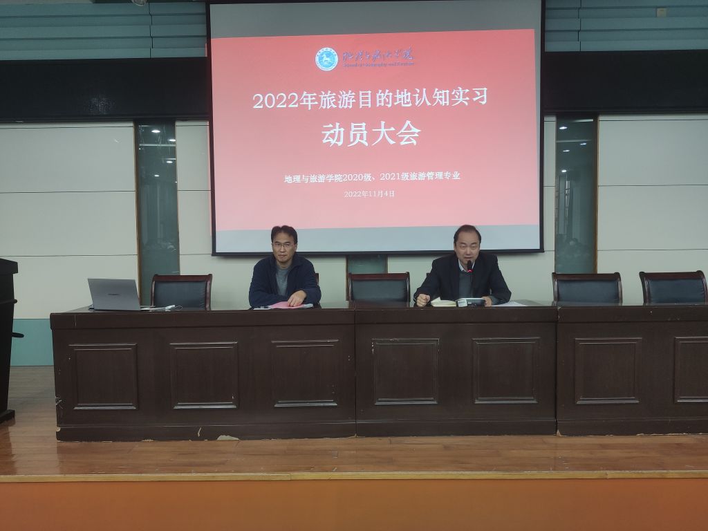 11月4日上午,2020级、2021级旅游管理专业在公司实验楼101报告厅召开2022年旅游目的地实习动员会。公司党委副书记乔静、副经理杨兴柱、旅游管理专业负责人杨钊、实习指导教师杨效忠、尹寿兵、黄剑锋、王群、徐致云以及辅导员韦银艳参加会议。2020、2021级旅游管理专业全体员工参会学习。