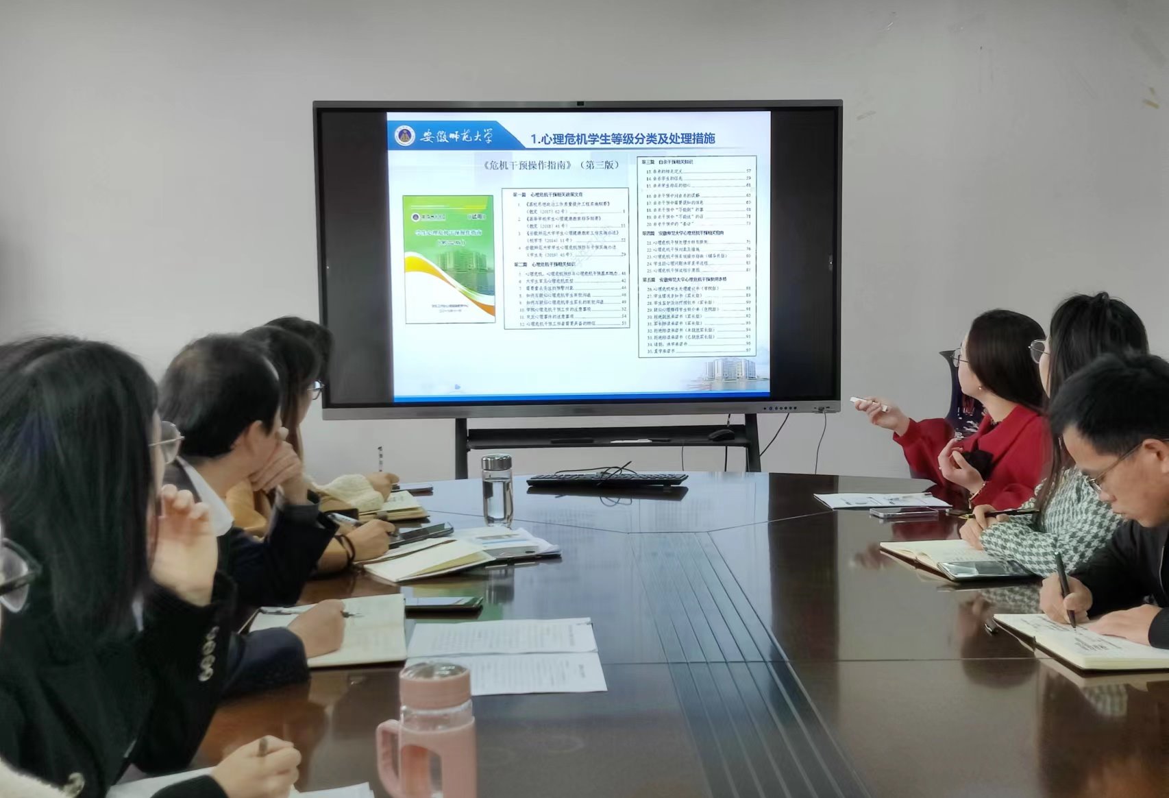 为进一步加强疫情防控常态化背景下的员工心理健康教育工作,有效预防秋季节点性、突发性心理危机事件,11月15日上午,英国365集团官网邀请校老员工心理健康教育中心心理咨询师聂余为全体专兼职辅导员做心理危机干预专题培训。会议由公司党委副书记乔静主持,公司全体本科生、研究生专兼职辅导员参会。