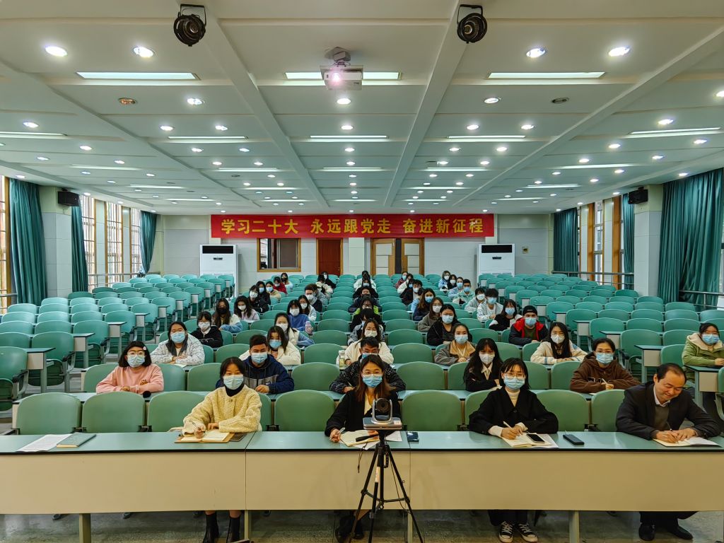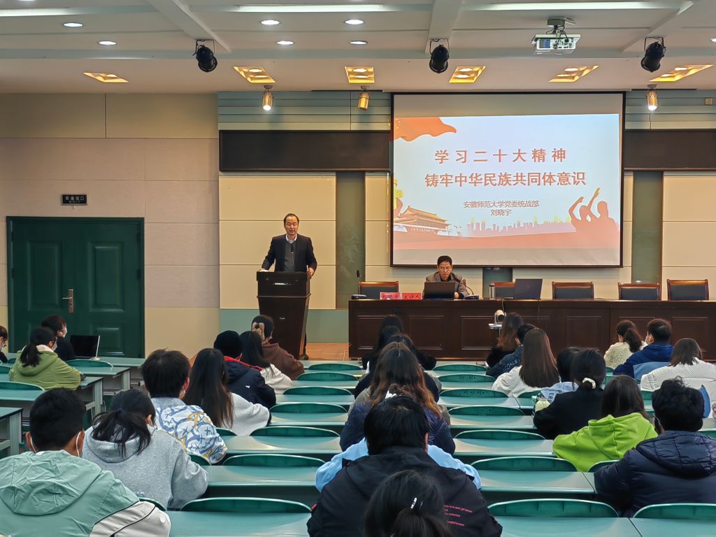 11月23日下午,英国365集团官网邀请公司党委统战部常务副部长刘晓宇,在公司实验楼101报告厅通过线上线下相结合的方式,作题为《学习二十大精神 铸牢中华民族共同体意识》的专题报告。公司党委副书记乔静、本科生党支部书记、辅导员、公司“团结花开”民族班学员及全体少数民族员工聆听报告。专题报告由乔静主持。