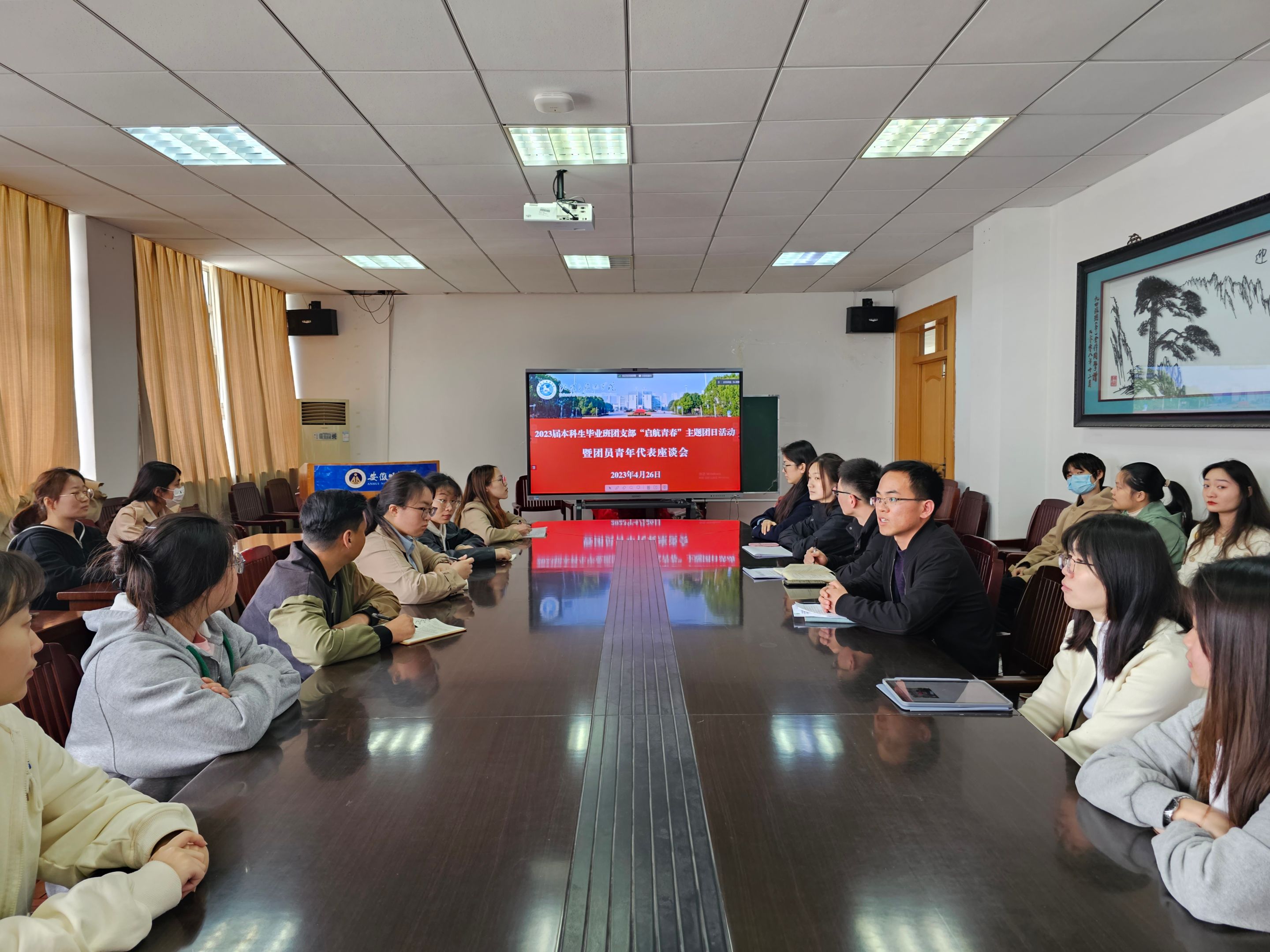 4月26日下午,英国365集团官网在公司行政楼三楼会议室举行2023届本科生毕业班团支部“青春起航”主题团日活动暨团员青年代表座谈会,毕业班辅导员韩红豆,各团支部青年代表和员工党员代表参加会议。会议由毕业班辅导员齐小学主持。