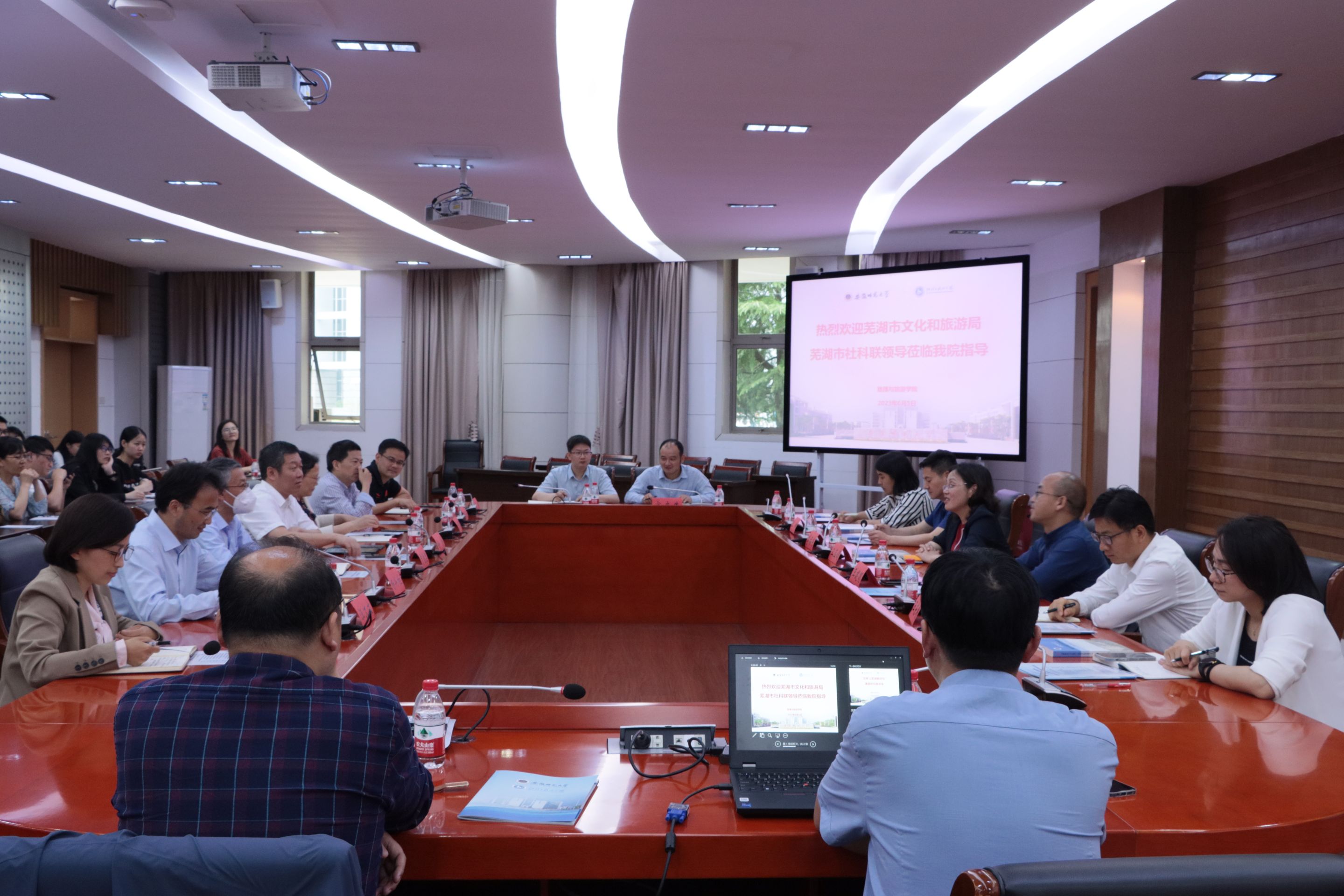 会上,徐彬代表公司对芜湖市文化和旅游局、芜湖市社科联一行的来访表示欢迎,并指出公司作为芜湖市首批“城市合伙人单位”,与芜湖市政府和各职能部门历来有着良好的合作基础,希望公司相关公司能够为芜湖城市的发展贡献力量,通过交流合作实现校地融合,互促共进。
