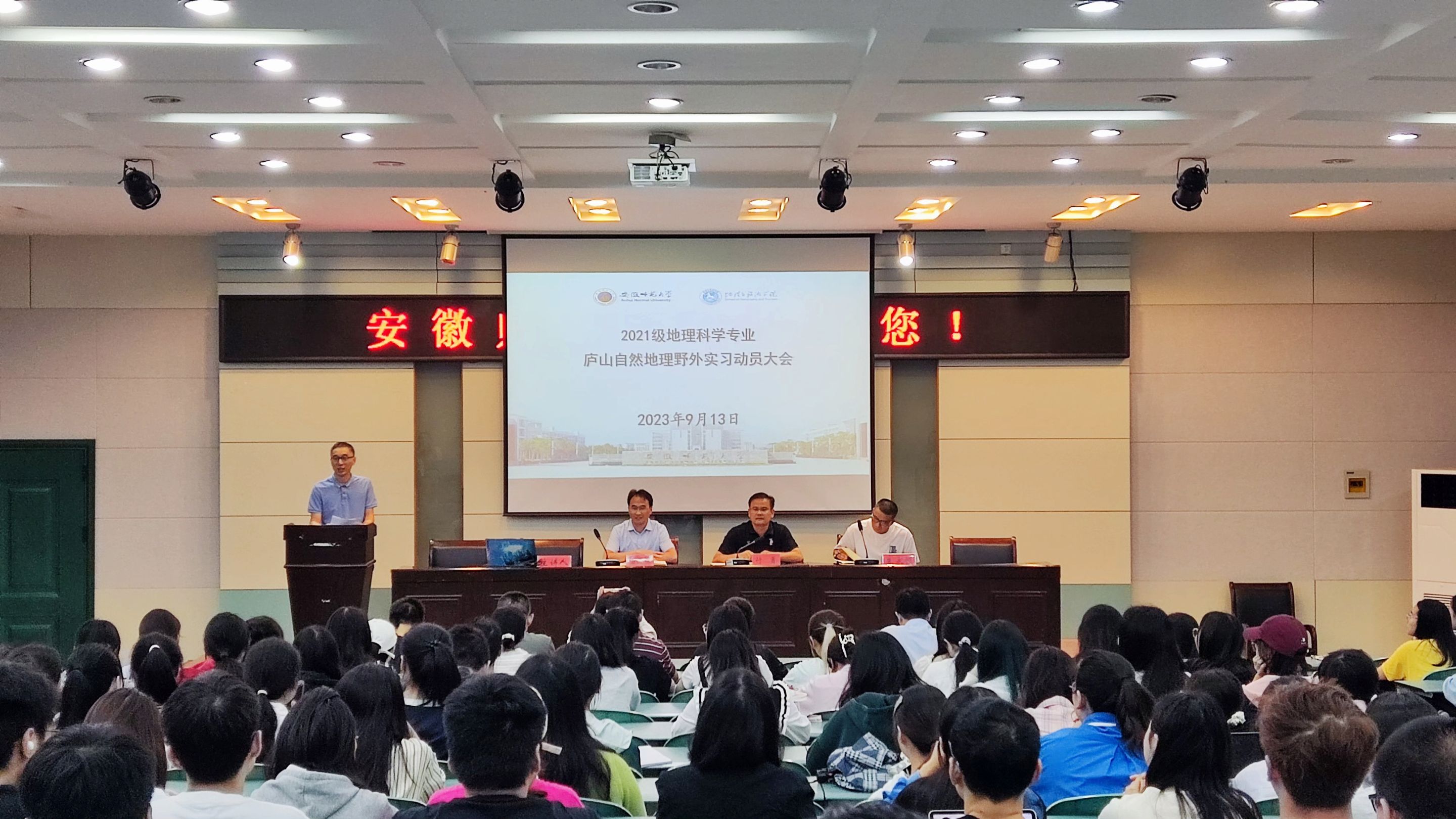 9月13日下午,21级地理科学(师范)专业在公司实验楼101报告厅召开庐山自然地理野外实习动员大会,公司党委副书记付勇、副经理杨兴柱、地理科学专业负责人朱永恒、实习指导老师以及21级地理科学(师范)专业全体员工参会,会议由实习负责人胡春生主持。