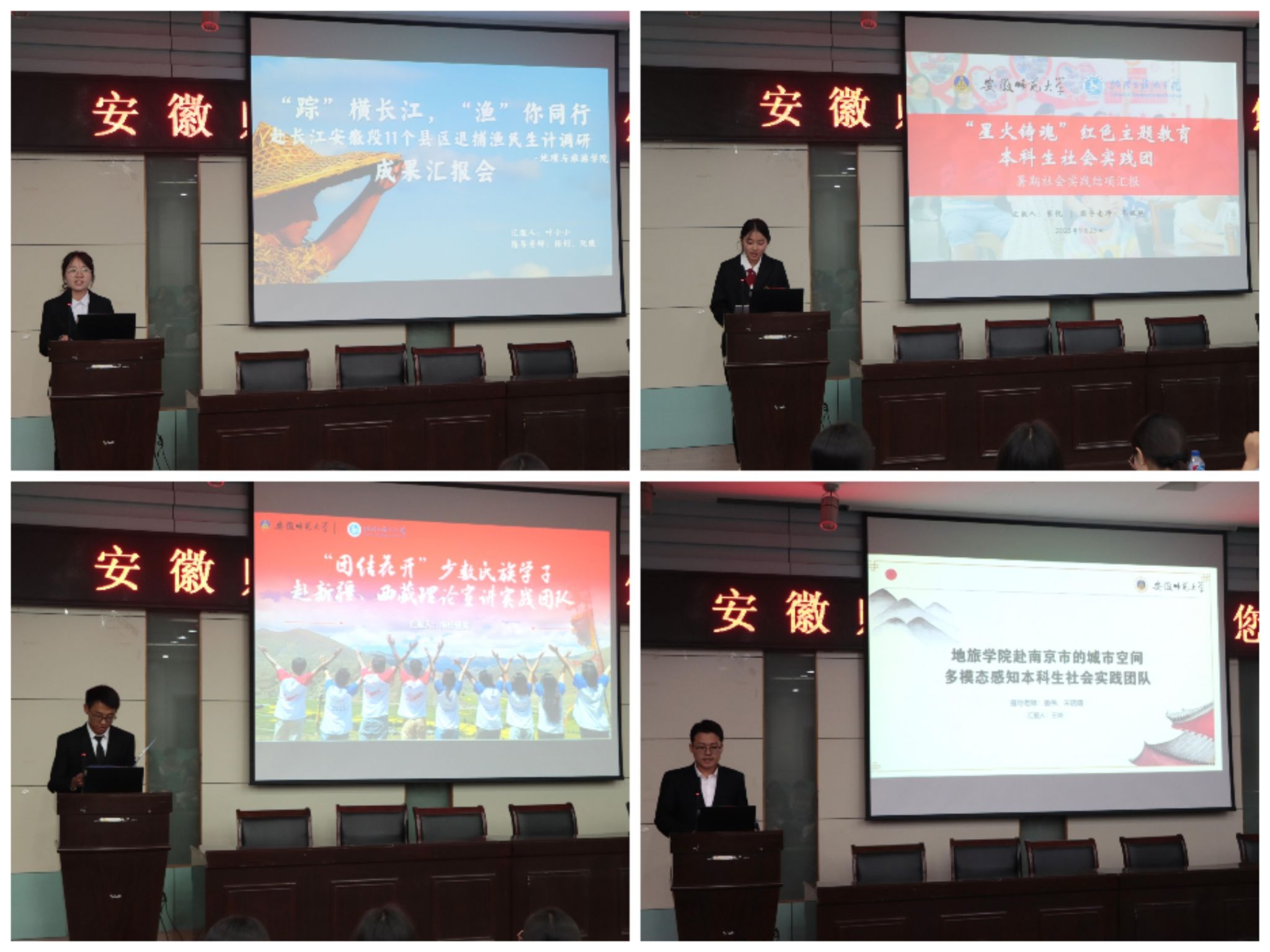 汇报开始,徐瑾介绍了此次汇报会的整体安排、各团队汇报的注意事项及评委打分规则。会上12支社会实践团队和9个班级团支部队伍以PPT汇报的形式,依次围绕开展情况、实践过程、实践成果等方面,生动形象地讲述了同学们的暑期社会实践故事,获得评委老师与观众的阵阵掌声。