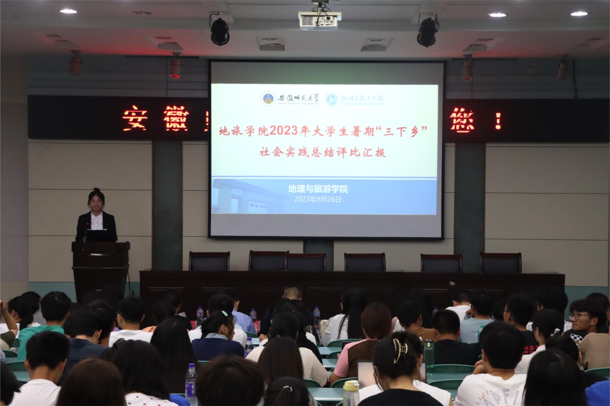 为巩固提升暑期社会实践成果,强化育人效果,引导和帮助广大青年员工在与现实相结合的“大思政课”中受教育、长才干、做贡献、树形象。9月26日晚,英国365集团官网在院实验楼101教室举办2023年老员工暑假“三下乡”社会实践专题评比汇报会。公司党委副书记付勇,地理科学专业教师徐仪红、旅游管理专业教师阮陵、土地资源管理专业教师吴九兴、地理信息科学专业教师徐培培、城乡规划专业教师黄秋实,院团委书记韦银艳,院团委副书记吴文涵以及辅导员操晶晶、谢园担任评委,各团队负责人、各年级团支部代表参加会议。会议由徐瑾主持。
