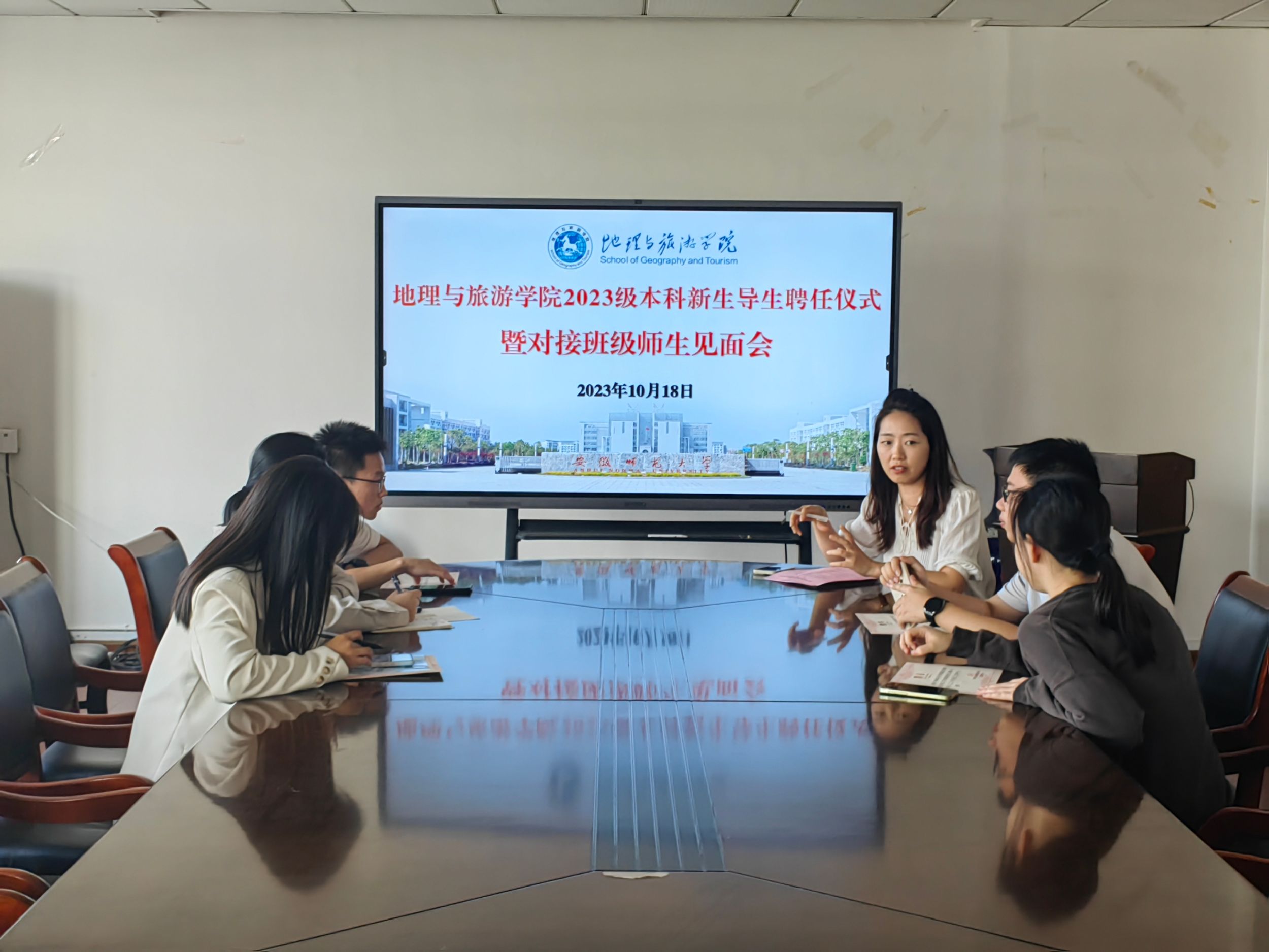 会上,2023级地理科学(师范)、旅游管理专业本科生辅导员齐小学宣读2023级本科新生导生名单,付勇为2023级本科新生导生颁发聘书,2021级地理科学(师范)专业本科生1班团支部书记翁丹煜作为2023级本科新生导生代表发言。