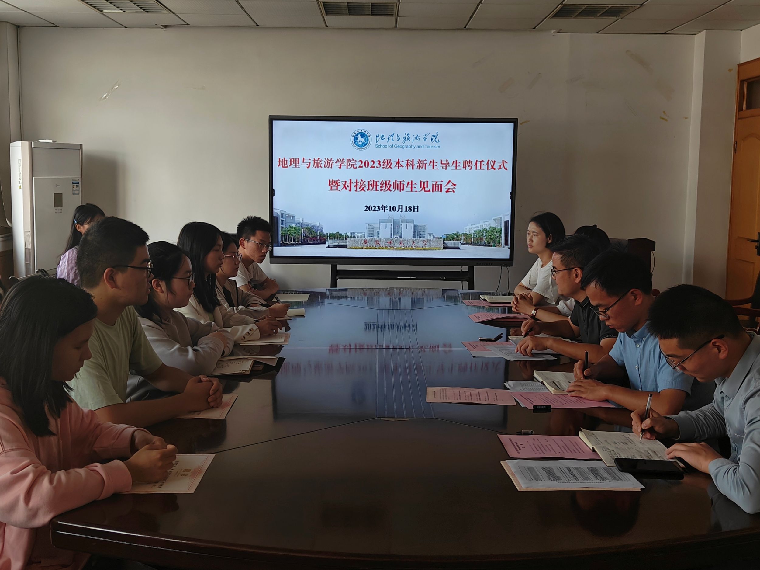 10月18日下午,英国365集团官网在公司行政楼四楼会议室举行2023级本科新生导生聘任仪式暨对接班级师生见面会,公司党委副书记付勇,2023级本科新生辅导员白雪、李婷君、齐小学,2023级本科新生导生参加会议。会议由英国365集团官网本科生辅导员韩红豆主持。
