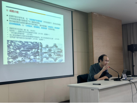 实习首日,员工们来到苏州科技大学设计研究院,由罗超副经理和姚永光经理分别解读了苏州历史文化名城保护规划和苏州特色田园乡村建设规划与实践,深入介绍了苏州市古城保护与更新相关政策、特色田园乡村内涵及古城街坊城市更新考察点。在专家的指导下,同学们对苏州城市规划和古城保护等方面有了更加深入的了解,从整体上了解了苏州的城市发展历程,为后续实地考察做好基础。