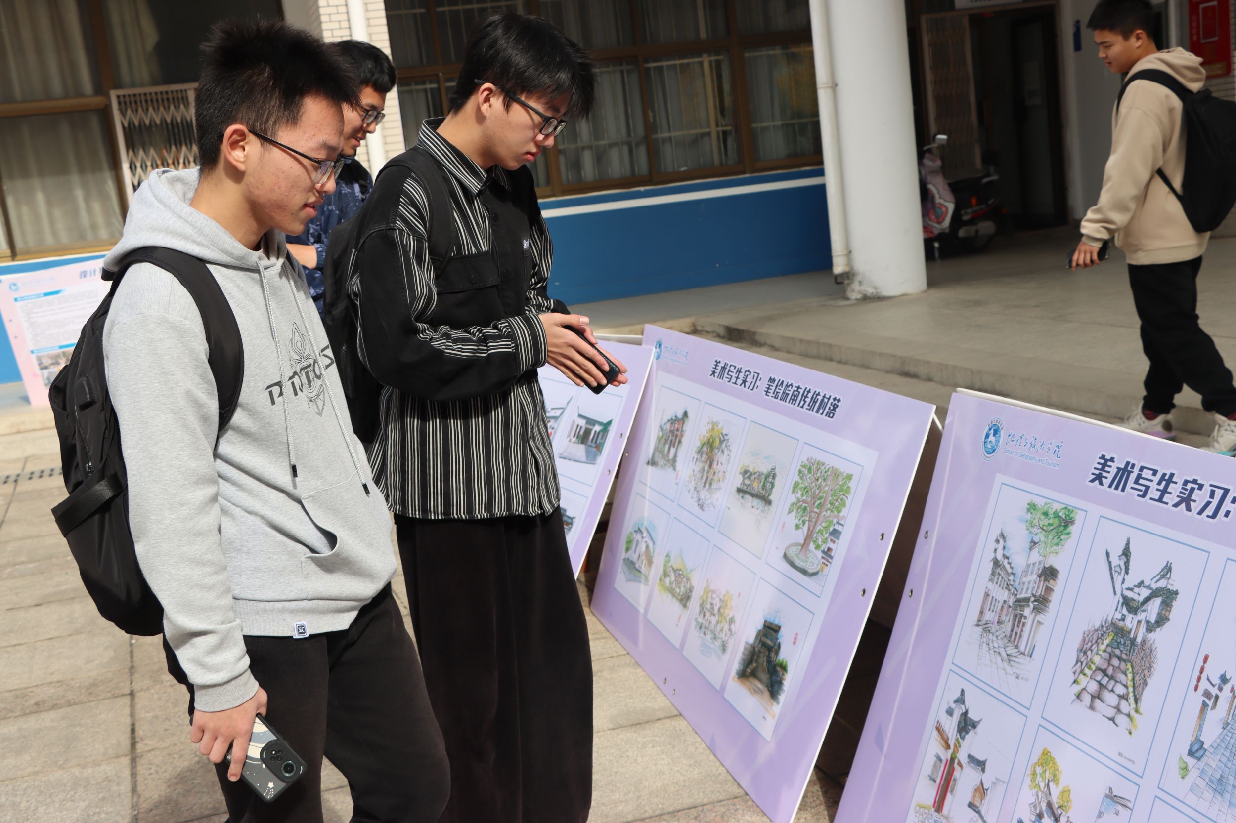 2022级城乡规划专业皖南写生实习优秀作品于11月22日在老员工活动中心展出,吸引各年级同学驻足观赏。从南湖到牛肠小巷,从湖边绿荷到粉墙黛瓦,从马头墙到木雕,或浓墨重彩,或清雅婉约,同学们用手中笔绘眼前景,一笔一画勾勒出青砖白瓦马头墙,使徽风徽韵具象化。