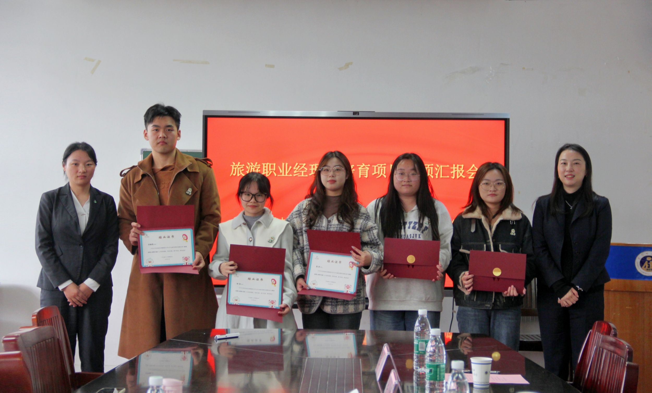 汇报结束后由陈静总监和吴燕经理向第一届职业经理人培育计划成员颁发职业经理人人才培养课程结业证书并赠送森泊独特徽章表示鼓励。