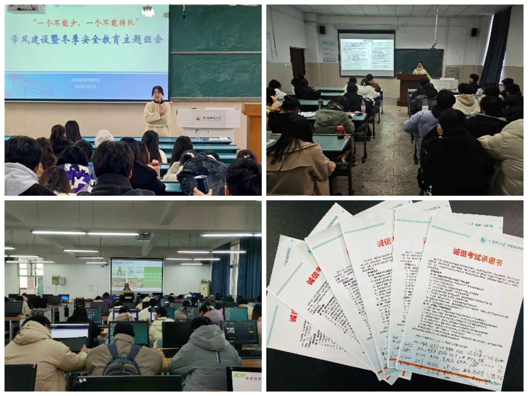 考试结束后,各班级辅导员召开寒假离校主题班会,针对离校报备手续、宿舍卫生安全、离校交通安全、假期个人规划、开学补考事宜等进行全面布置,并鼓励员工结合个人实际,以2024年“行走的思政课堂”寒假社会实践为手段,积极参与社会服务、实现个人综合素质提升。