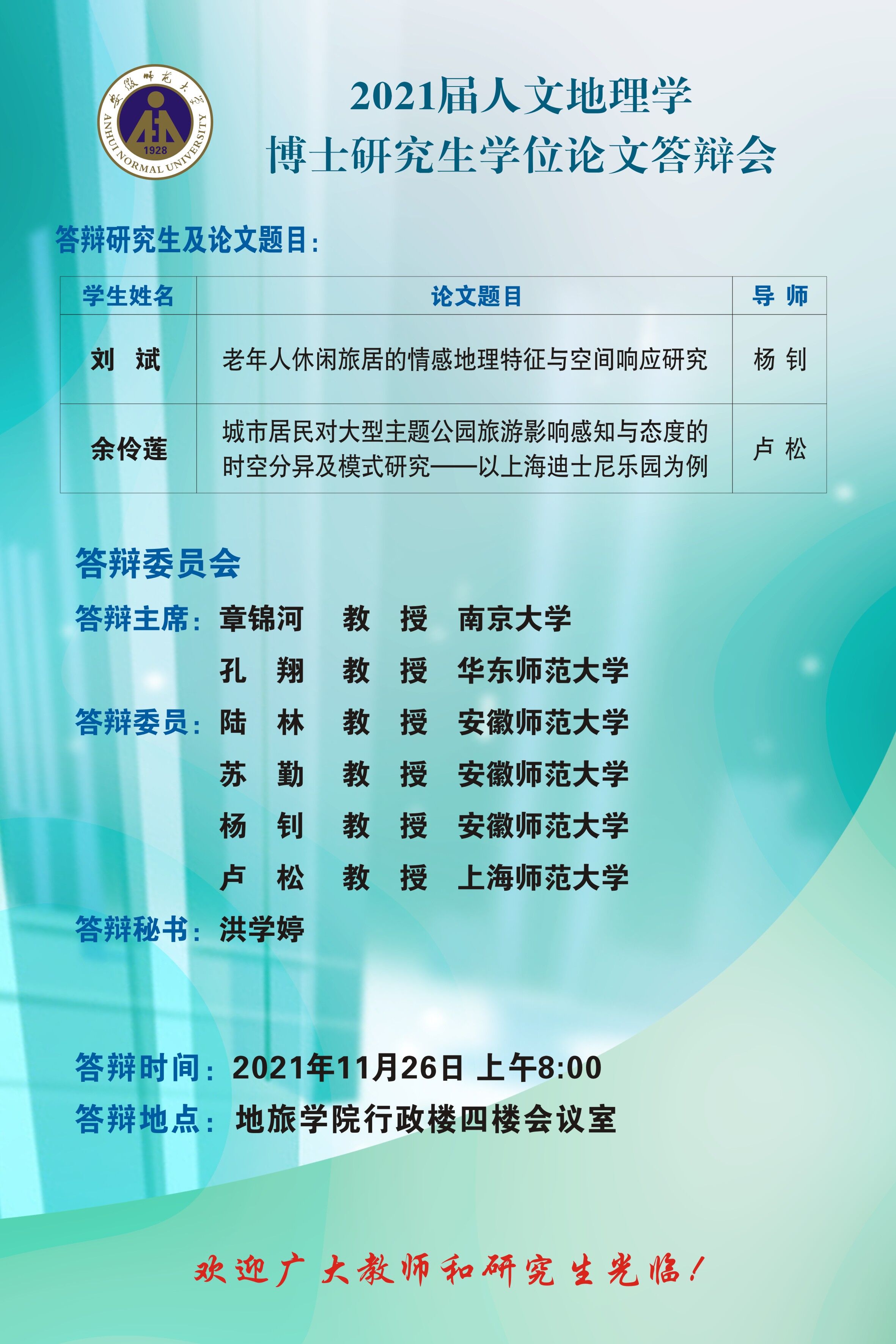 英国365集团官网博士研究生答辩公告(第三批)