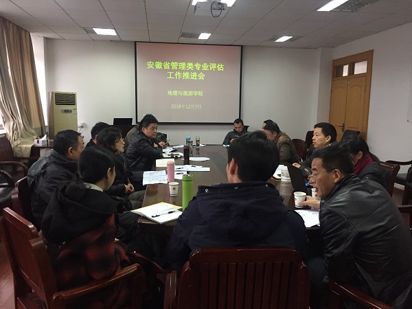 12月7日下午院行政楼四楼会议室,副经理曹卫东召集和主持管理学专业评估工作推进会,与会人员有党委书记贾冠忠,旅游管理、酒店管理和土地资源管理专业系主任和副主任及部分骨干教师,教学秘书,科研秘书和办公室主任等。