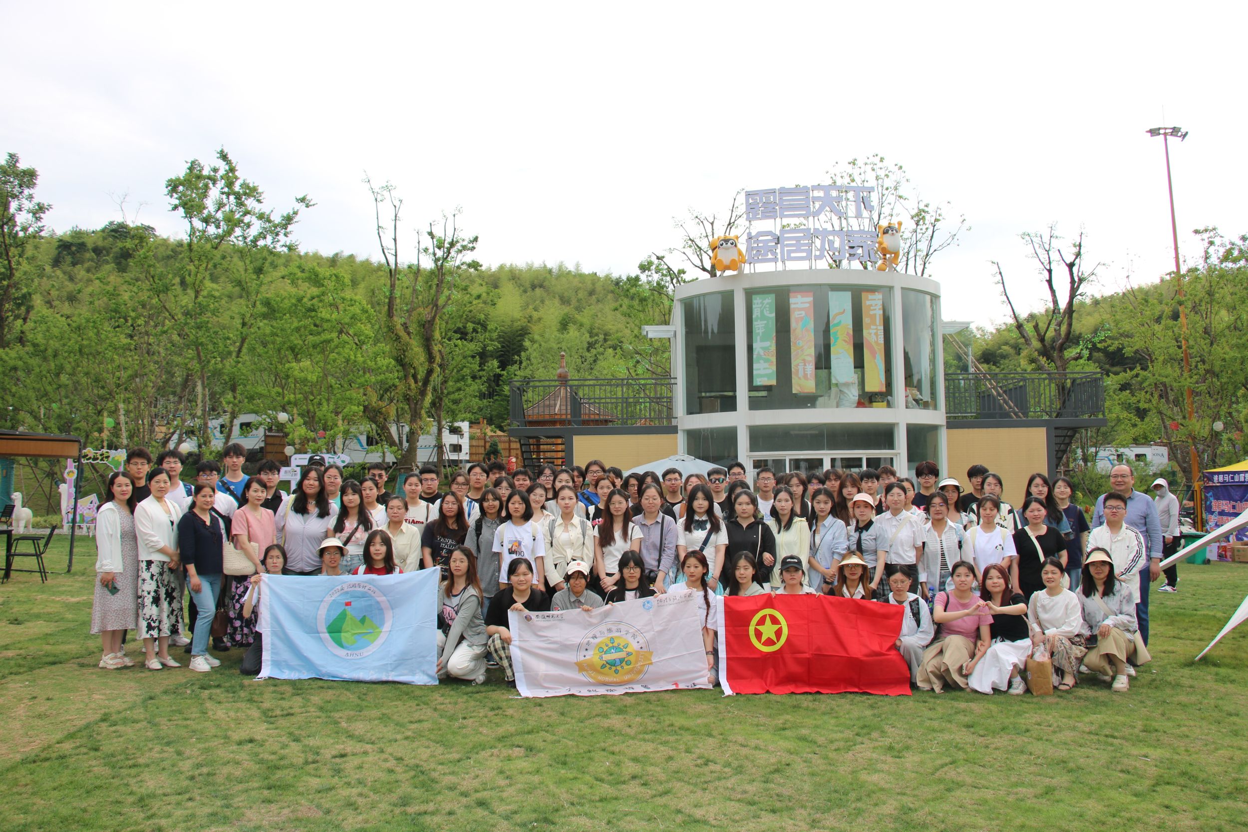 本网讯(周婷婷、李凯悦)为加强团队建设,营造良好的学科氛围,培养一批有理想,有本领,有担当的新时代旅游人。以《旅游市场营销学》和《旅游质性分析方法》两门专业课程为依托,2024年6月2日星期日下午,2022级旅游管理专业全体员工在指导老师杨钊、徐致云、刘云霞、洪娟、余伶莲、吴悦、洪学婷的带领下前往芜湖途居马仁山房车露营地开展特色课程实践。
