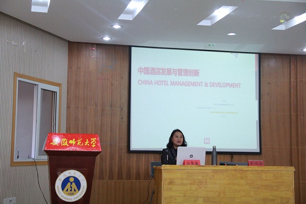 本网讯 (国旅公司 文/王文燕 图/徐童彤) 为提升酒店管理专业认同感,培养酒店优秀人才,12月11日上午,公司邀请到北京第二外国语公司酒店管理公司院长、北京市创新团队学术带头人,旅游管理学科学术带头人谷慧敏教授为公司酒店管理专业师生开展了一场题为“新形势下酒店管理发展趋势”的学术讲座。此次讲座于老员工活动中心二楼就业指导大厅举行,报告由公司分管教学副经理方凤满主持,公司部分专业教师以及全体酒店管理本科生到场聆听报告。