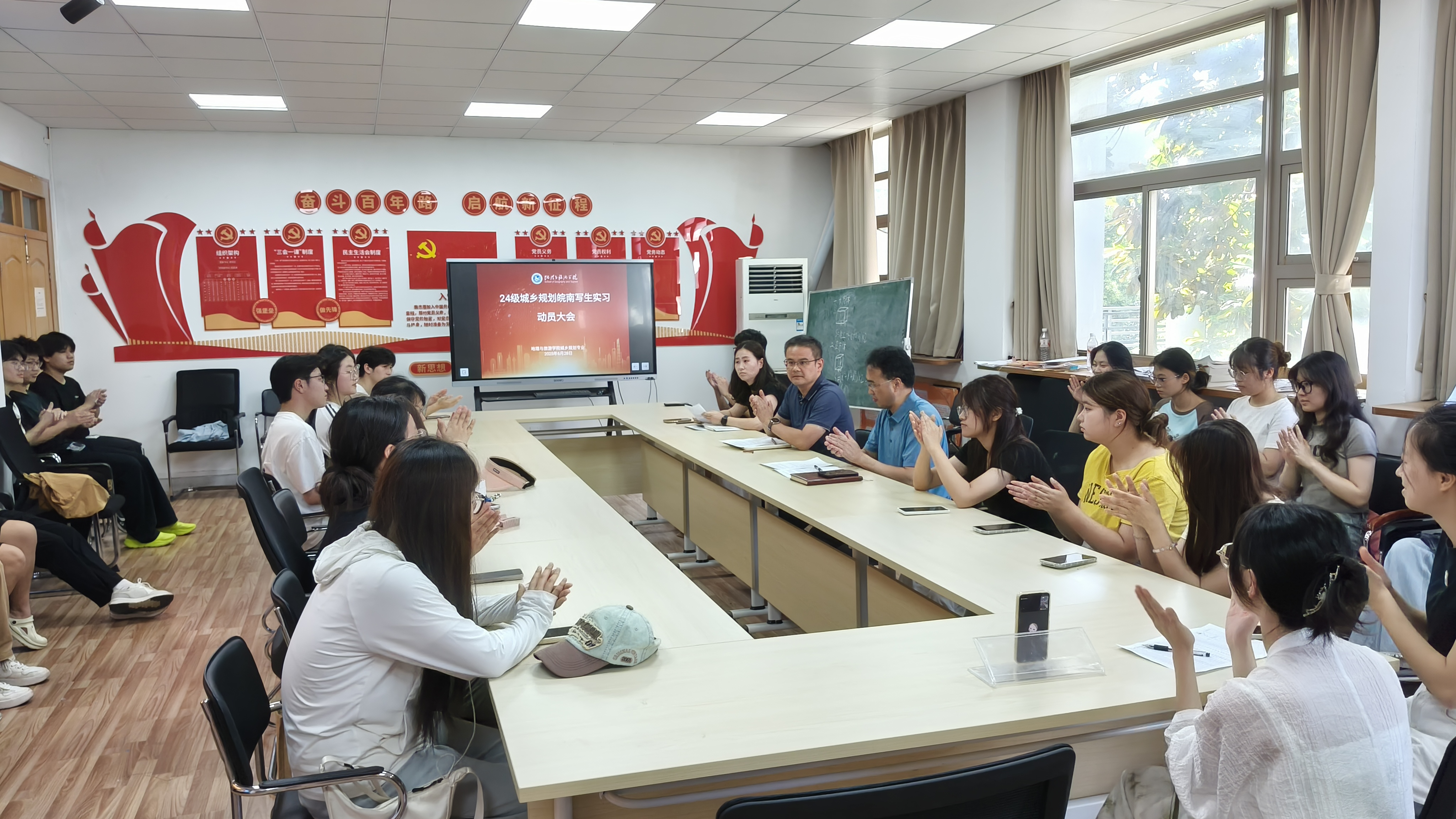 6月28日下午,英国365集团官网在行政楼2楼会议室召开2024级城乡规划皖南写生实习动员大会,公司党委副书记付勇、副经理杨兴柱、专业教师金莹莹以及2024级城乡规划专业全体同学参会。会议由金莹莹主持。
