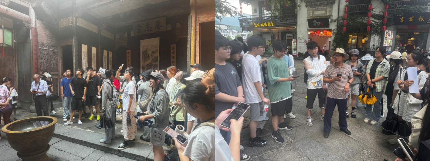 实习期间,同学们不惧高温酷暑,先后走访了宏村、屯溪老街、安徽中国徽州文化博物馆、黄山城市展览馆及西递等地,深入考察徽州古村落的建筑艺术与文化传承。