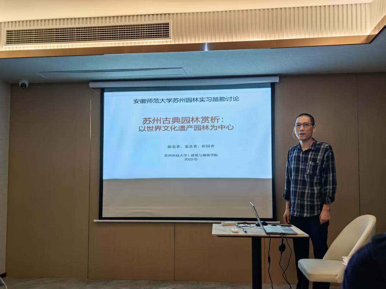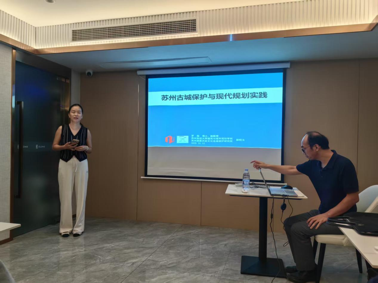 10月13日,实习第一天师生前往苏州山塘街开展城市调研,感受苏州传统风貌,为后续专业交流学习铺垫实践认知。实习期间,特别邀请到了苏州科技大学罗超教授与谢泓权副教授分别就苏州总体规划和苏州古城展开理论讲解。罗超教授从宏观视角梳理苏州空间结构的演变逻辑,谢泓权副教授则聚焦古城及新区发展与园林艺术手法,深入剖析拙政园、平江路等园林及街景的造景手法与保护。两位教授的讲解既填补了员工对苏州城市规划背景的认知空白,又为后续实地考察标注了重点研究方向,让员工带着明确的问题意识投入接下来的实习环节。