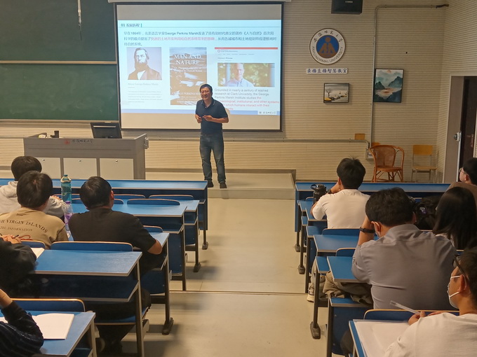 王原教授从荣获2020年度IFLA AAPME景观设计杰出奖作品:基于生态系统服务的中国江淮丘陵地区乡村陂塘湿地景观更新模式切入,引入本节重点讲解内容:景观生态规划发展、概念和技术方法。王原教授详细讲解了景观生态规划的发展历程、实践研究课题,包括栖息网络、省域保护地体系、城市生态基础设施网络、国家湿地公园、城市增长边界等,以及景观生态学的基础理论。并通过合肥市城市建设用地扩张过程、上海市近20年城市绿色基础设施景观格局演变,详细介绍了景观结构、景观功能以及景观动态。讲课的内容丰富多彩,思路清晰,课堂教学节奏紧凑,内容生动形象。