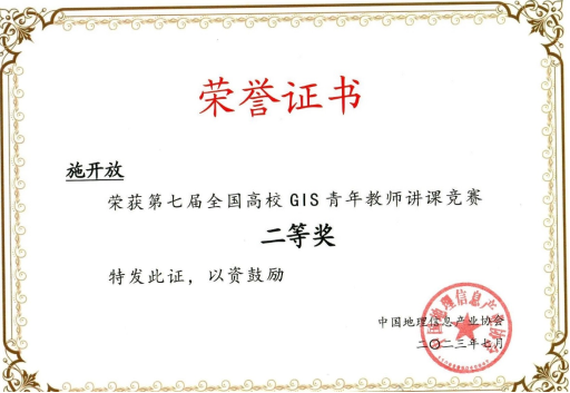 2023年7月11—13日,由中国地理信息产业协会指导,河南大学主办,中国地理信息产业协会教育工作委员会等承办的第七届全国高校GIS青年教师讲课竞赛在河南大学举行。来自南京大学、武汉大学、华东师范大学、战略支援部队信息工程大学等全国80余所高校的GIS相关专业优秀青年教师参加了本次竞赛。竞赛采用现场教学与教学设计创新汇报两种方式进行教学演示。通过激烈的角逐,公司青年教师施开放在此次竞赛中荣获二等奖。