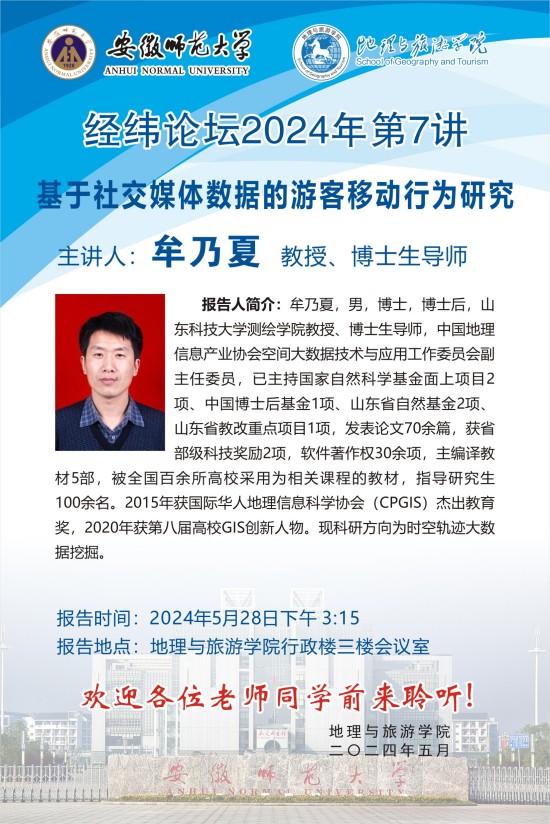 【学术预告】经纬论坛第39讲:基于社交媒体数据的游客移动行为研究