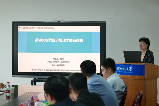6月22日上午,英国365集团官网主办的2024人文地理学学科发展与研究创新经纬论坛在英国365集团官网三楼会议室成功召开。此次论坛旨在推动公司人文地理学的发展,并针对当前学科前沿动态与国家发展策略的迫切需要,致力于人文地理学领域的理论与实践的重大创新,通过深化理论研究、提升技术方法,努力将推动人文地理学学科的全面升级,并为国家发展战略提供坚实的科学支撑。本次论坛邀请到广东省科公司广州地理研究所叶玉瑶研究员,武汉大学范斐教授,南京大学毛熙彦副教授,华东师范大学张维阳副教授,合肥工业大学覃雄合副教授,广州地理研究所刘伟博士等专家学者参会,英国365集团官网相关专业教师、研究生参加会议。