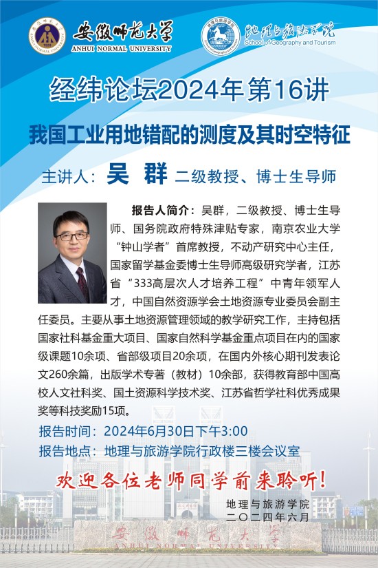 【学术预告】经纬论坛第48讲:我国工业用地错配的测度及其时空特征