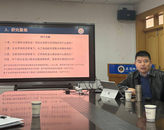 2024年12月13日上午,中国科公司南京地理与湖泊研究所梁双波副研究员应邀到公司讲学,做了题为《战略导向下的港口物流研究与区域发展思考》的学术报告,报告在公司行政楼三楼会议室举行。公司相关专业教师和研究生参加了本次报告会。