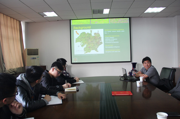 随后,黄胜利结合自己的科研成果,作了题为“辅助林业管理的遥感信息自动化提取及生态模拟”的学术报告。在介绍辅助林业管理的遥感信息自动化提取及生态模拟概念和研究背景的基础上,详细阐述了如何运用遥感与地理信息技术对森林的火灾、生物多样性和自然状况进行模拟和评估。会后,黄胜利博士就与会教师和研究生提出的地理信息技术等问题进行了深入的对话、交流。会场气氛热烈,与会师生都感到受益匪浅。