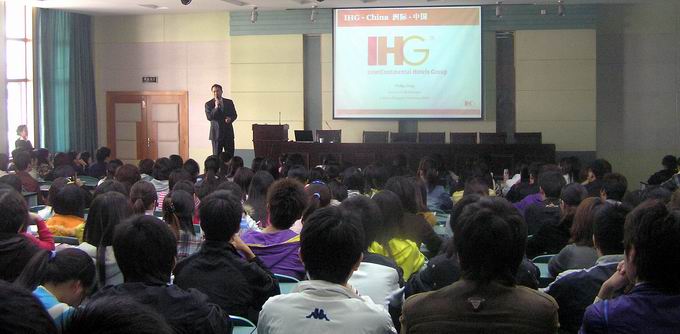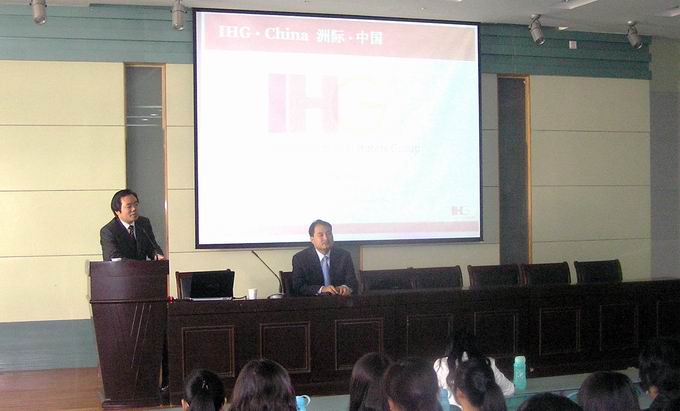 11月5日下午,大中华区区域总经理丁七州先生应邀来国旅公司访问,并在院实验楼101教室为该院师生作了题为 “洲际集团在中国”的专题报告。