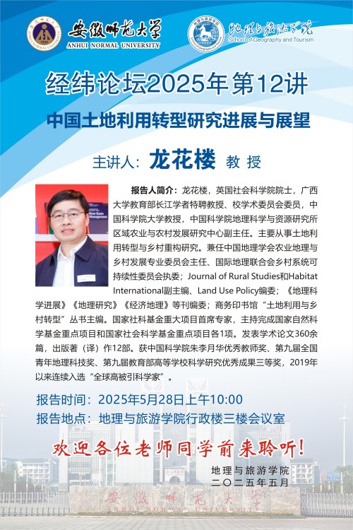【学术预告】经纬论坛第78讲:中国土地利用转型研究进展与展望