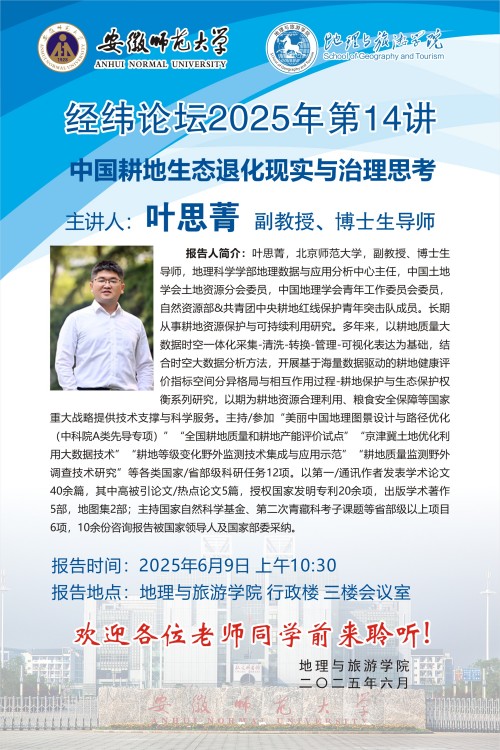 【学术预告】经纬论坛第80讲: 中国耕地生态退化现实与治理思考