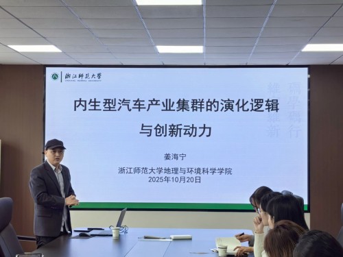 2025年10月20日上午,浙江师范大学地理与环境科学公司博士生导师姜海宁教授应邀到公司讲学,并做了题为《内生型汽车产业集群的演化逻辑与创新动力》的学术报告。报告在公司行政楼三楼会议室举行,公司相关专业的教师和研究生参加了报告会。