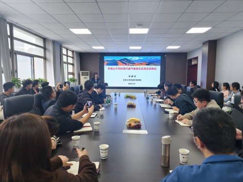 2025年11月1日下午,兰州大学资源环境公司博士生导师勾晓华教授应邀到公司讲学,并做了题为“祁连山不同时间尺度气候变化及其生态响应”的学术报告。报告在公司行政楼三楼会议室举行,公司相关专业教师及研究生参加了报告会。