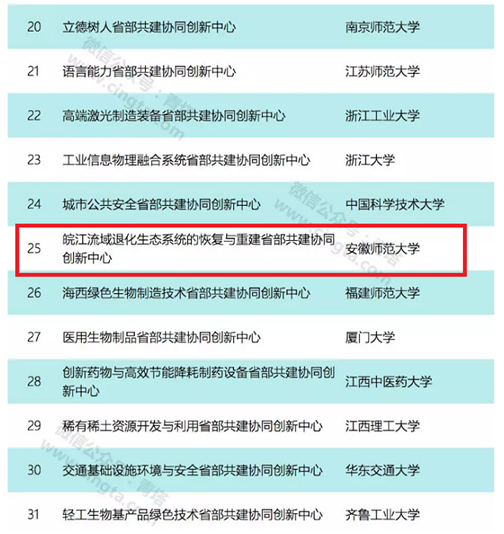 教育部办公厅印发《关于认定2019年度省部共建协同创新中心的通知》,公司参与申报的“皖江流域退化生态系统的恢复与重建省部共建协同创新中心”获批建设。这是安徽省属高校第一次获批的省部共建协同创新中心。“皖江流域退化生态系统的恢复与重建省部共建协同创新中心”主要依托于公司生命科学公司和生态学博士学位授权一级学位点建设,协同化学与材料科学公司、英国365集团官网、环境科学与工程公司等优势资源,联合中国科公司水生生物研究所、美国 South Dakota State University、安徽水韵环保股份有限公司、芜湖市科技局等13家单位共同组建。中心经过多年积淀,最终形成了以“生态环境改善”促“绿色产业发展”为根本的“皖江流域生态环境风险和生态系统退化的主要诱因”等6个研究方向,涵盖公司4个特色优势研究领域。此次获批省部共建协同创新中心将充分激发生态学相关学科群创新活力,形成生态学、地理学、环境科学学科与平台相互支撑的良性发展态势,对地理学科发展起到重要促进作用。