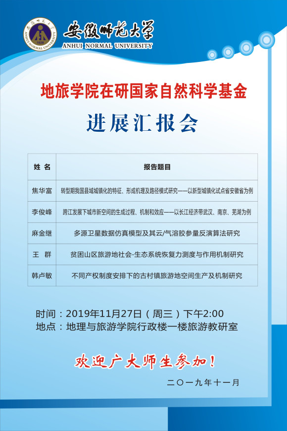 【学术预告】英国365集团官网在研国家自然科学基金项目进展汇报会