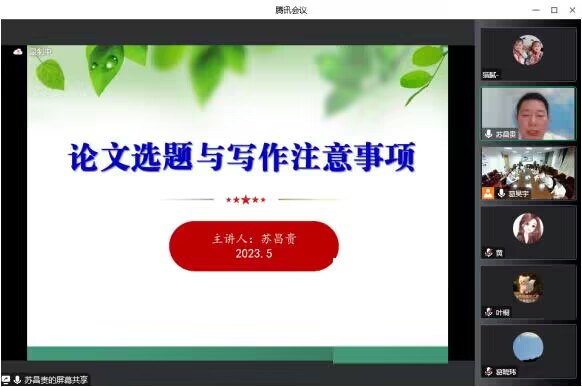 5月31日晚,湖南财政经济公司经济地理所副所长苏昌贵研究员应邀作了题为《论文选题与写作注意事项》的线上讲座,公司相关专业的教师和研究生在公司行政楼四楼会议室通过视频连线的方式聆听了讲座。