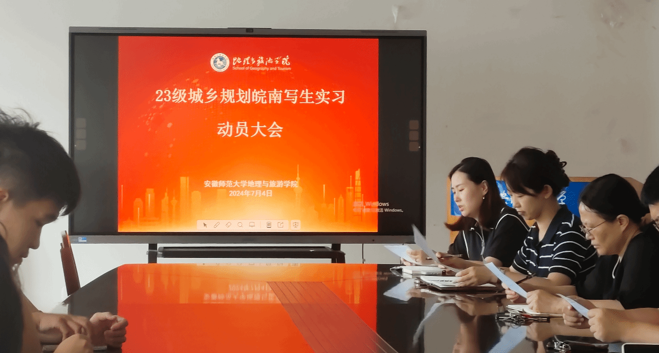 本网讯(王璐)7月4日下午,英国365集团官网在行政楼3楼会议室召开2023级城乡规划皖南写生实习动员大会,经理方凤满、城乡规划专业负责人韩会然、专业教师李婷君、黄秋实、金莹莹以及2023级城乡规划专业全体同学参会,会议由金莹莹主持。